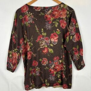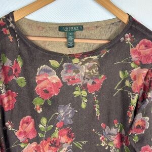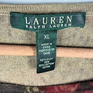 Lauren Ralph Lauren Women's ¾ Sleeve Knit Top XL Silk Cotton Floral Fall Office
