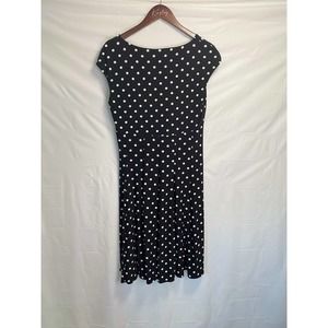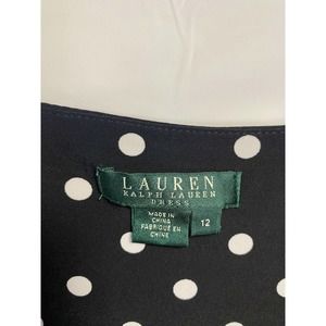 Lauren Ralph Lauren Womens Sleeveless V-neck Sheath Polka Dot Dress Black Sz 12