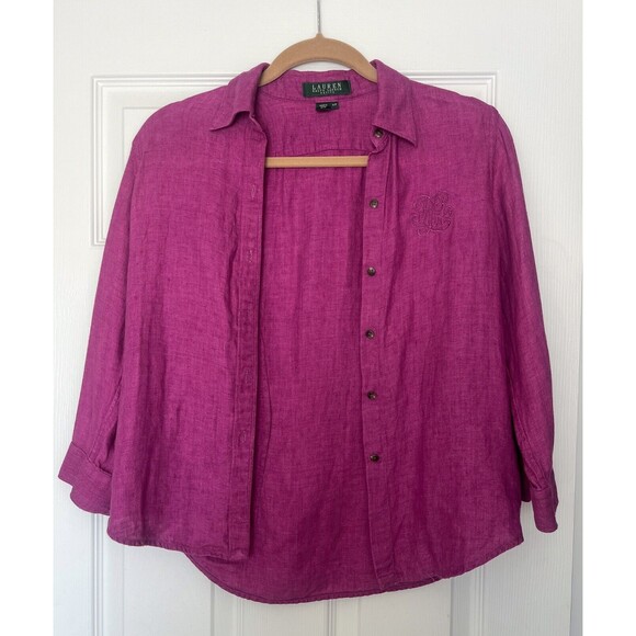 Lauren Ralph Lauren Womens Small Petite PP Purple Button Down Shirt LRL Monogram