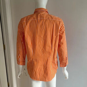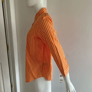 Lauren Ralph Lauren Womens Striped Orange 3/4 Sleeve Button Up Shirt Size M