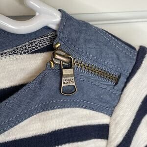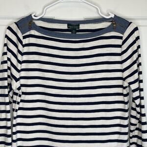 Lauren Ralph Lauren Women's Striped Pullover Sz M Navy White Embroidered Preppy
