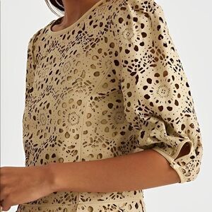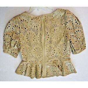 Lauren Ralph Lauren Women's Sz 10 Beige Lamb Leather Peplum Cutout Blouse