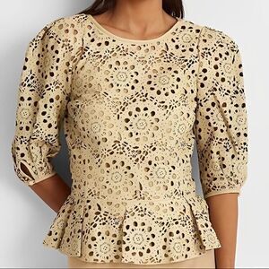 Lauren Ralph Lauren Women's Sz 10 Beige Lamb Leather Peplum Cutout Blouse $395