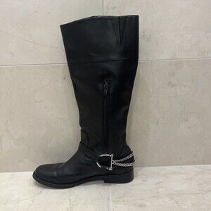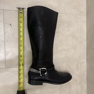Lauren Ralph Lauren Womens Sz 7 7M Black Jacqui Riding Boots Silver Chain