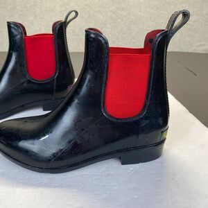 Lauren Ralph Lauren Women's Tally Ankle Rain Boots Size 6 Black Red,Pull On