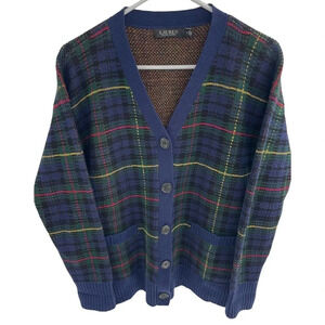 Lauren Ralph Lauren Women's Tarten Plaid Wool Cardigan Sweater Size Medium
