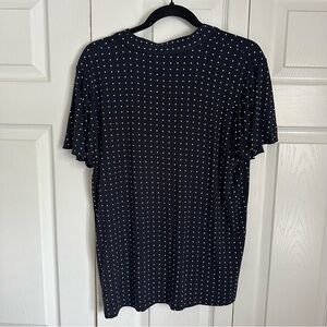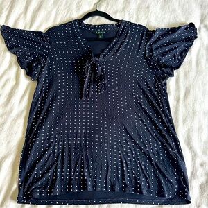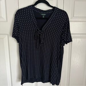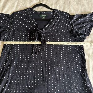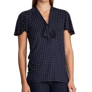 Lauren Ralph Lauren Womens Tie Neck Flutter Sleeve Navy Polka Dot Sz L Preppy