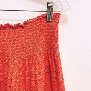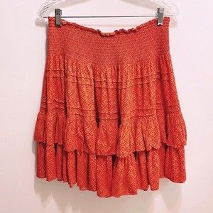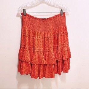 Lauren Ralph Lauren orange/red tiered ruffle print skirt in excellent condition. Western vibe with smocked waist. Sits above the knee.