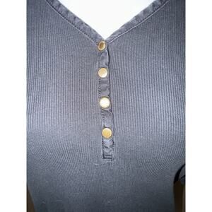 Lauren Ralph Lauren Womens Top Black V-Neck Buttons Short Sleeve Size XL
