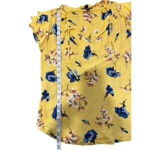 Lauren Ralph Lauren Womens Top Floral Ruffle Sleeve Linen Blend Yellow Size XL