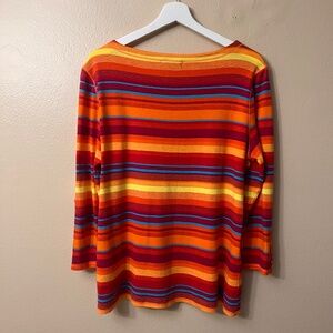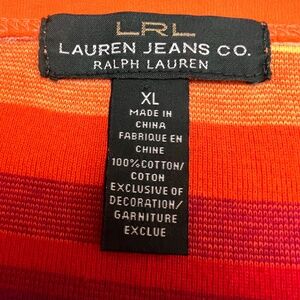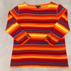 Lauren Ralph Lauren Women's Top Pullover 3/4 Sleeve 100% Cotton Striped Sz XL