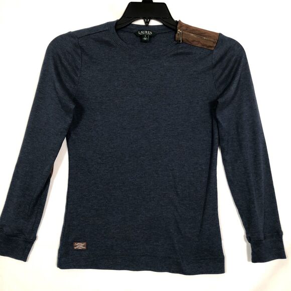 Lauren Ralph Lauren Womens Top Size Small Navy Suede Elbow Patch Zip Shoulder