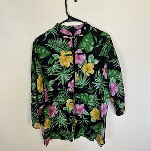 Lauren Ralph Lauren Womens Tunic Black Floral Linen Shirt Large Mandarin