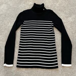 Lauren Ralph Lauren Women's Turtleneck Sweater Black White Stripes Size Large