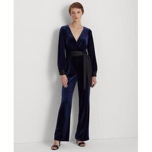 Lauren Ralph Lauren Womens Velvet Surplice Jumpsuit Size 18
