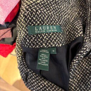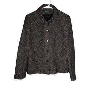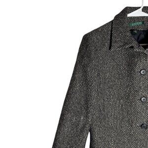 Lauren Ralph Lauren Womens Wool Blend Black/White Tweed Button-Front Jacket Size