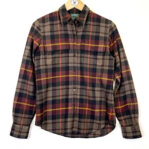 Lauren Ralph Lauren Womens Wool Tartan Plaid Button Front Flannel Shirt Heritage