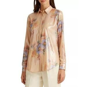 Lauren Ralph Lauren Women’s XL Floral Metallic Georgette Crepe Blouse Shirt