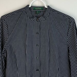 Lauren Ralph Lauren Women’s black and white button up shirt mao collar sz large