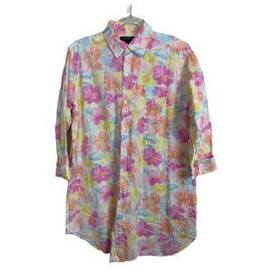 Lauren Ralph Lauren Women's size S Button Up Shirt Dress Floral Pastel Long Sleeves