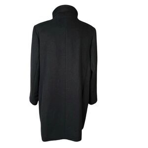 This wool blend coat features a professional design ideal for cooler weather. The buckle closures add sophisticated detail, while the black color ensures versatility.
