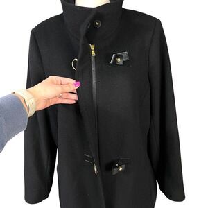 Lauren Ralph Lauren Women's Black Buckle-Front Walker Wool Blend Coat Size 16W