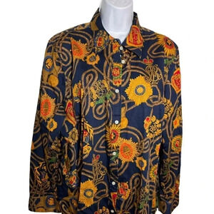 Lauren Ralph Lauren Women's Equestrian Crest Logo All Over Print shirt size 2X