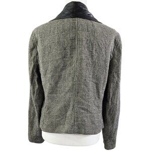 Lauren Ralph Lauren Wool Blend Faux Leather Collar Plaid Mixed Media Jacket