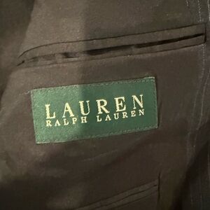 Lauren Ralph Lauren Wool Pinstripe Business Suit 44L , 38x30. Total Comfort pants. Blazer length 35in, p2p 21in, shoulder 20in, sleeve 23in. Small hole on back of blazer pictured