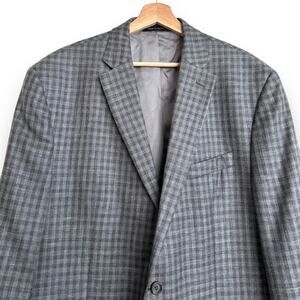 Lauren Ralph Lauren Wool Silk Blend Gray Plaid Two Button Blazer Men's Size 46L
