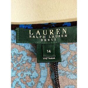 Lauren Ralph Lauren Wrap Midi Dress 14 Blue Citrus Resort Preppy Old Money Chic