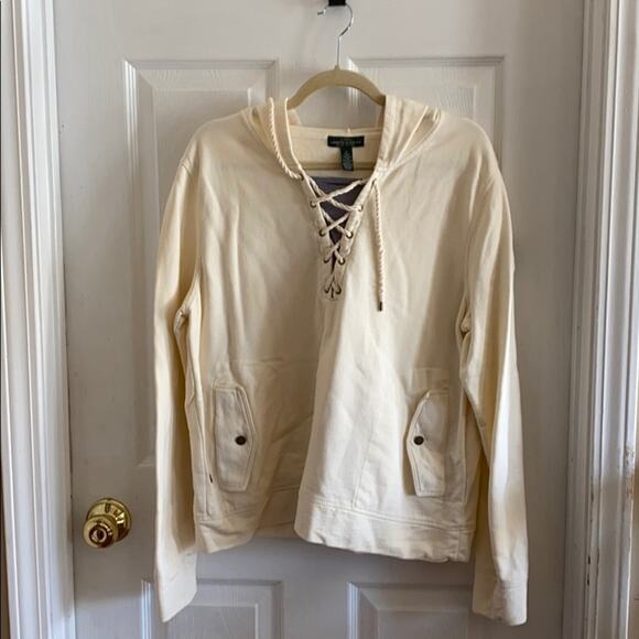 Lovely Lauren hooded sweatshirt. Ties in the front. Front pocket. Size XL. 22 inches armpit to armpit. 25 inches long. Nice condition.