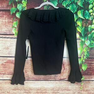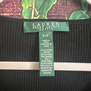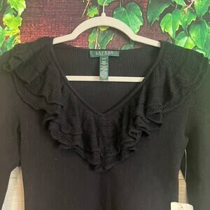 Lauren Ralph Lauren XS Small Petite Black Ruffled V Neck Blouse Pullover Sweater