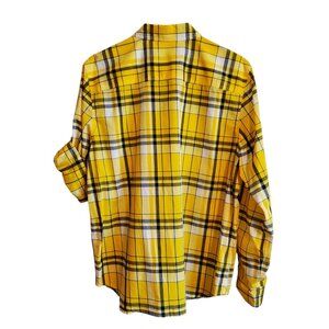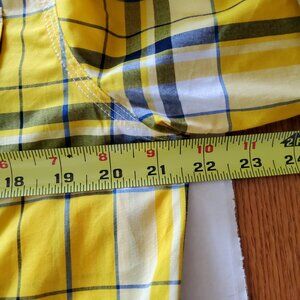 Lauren Ralph Lauren Yellow Blue Plaid Roll Tab Sleeve Button Up Blouse Large