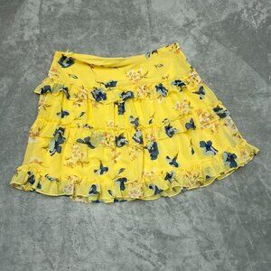 Lauren Ralph Lauren Yellow Floral Tiered Ruffle Skirt Size 14 NWT 6186