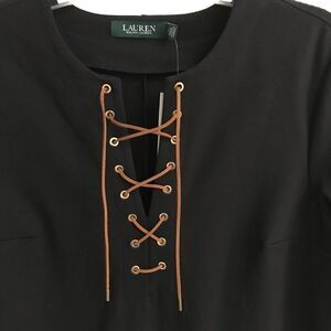 Lauren Ralph Lauren black ponte tie up short sleeve shift dress