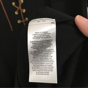 This minimalistic pull over dress is stretchy, has a faux leather lace up front with darted bust and short sleeves