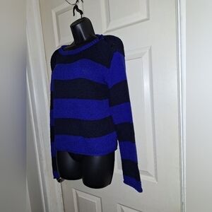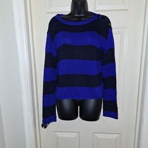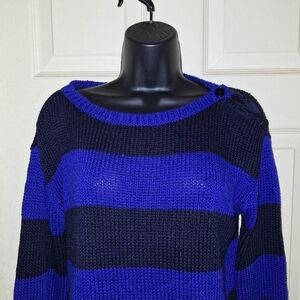 Lauren Ralph Lauren blue and black striped knitted sweater size medium pit to pit size is 26" top of shoulder to bottom hem is 23" if you have any questions please message me bundle for bigger deals Bin-70