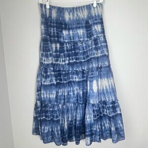 Lauren Ralph Lauren blue boho tie dye hippie layered tiered midi skirt Medium