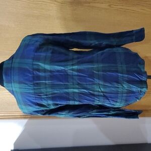 blue and green jewel tones long sleeve soft rayon flannel style shirt size medium by Lauren Ralph Lauren