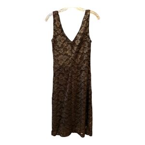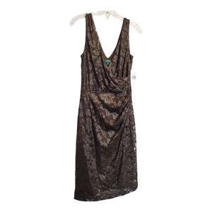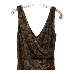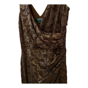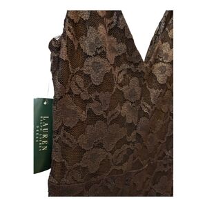 Lauren Ralph Lauren brown lace Holiday midi dress ruched shift NEW sleeveless