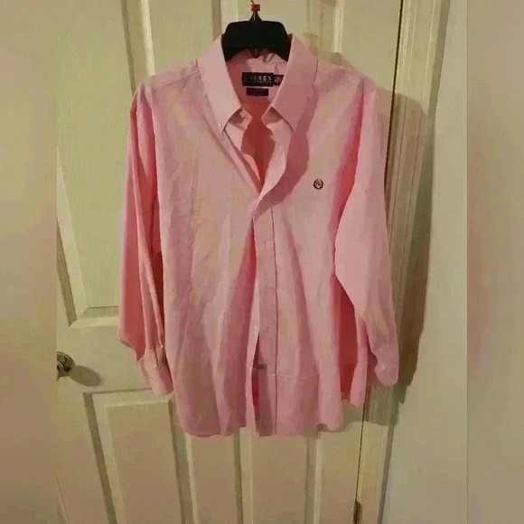 Lauren Ralph Lauren collar buttons long sleeves shirt in pink size 16.5 32/33
