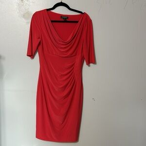 Lauren Ralph Lauren coral knit body con dress w/ front draping & side ruching 10