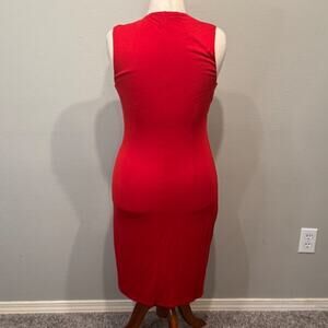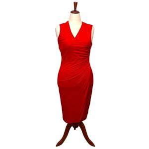 Lauren Ralph Lauren dress red knit sleeveless faux wrap midi length bodycon Sz M
