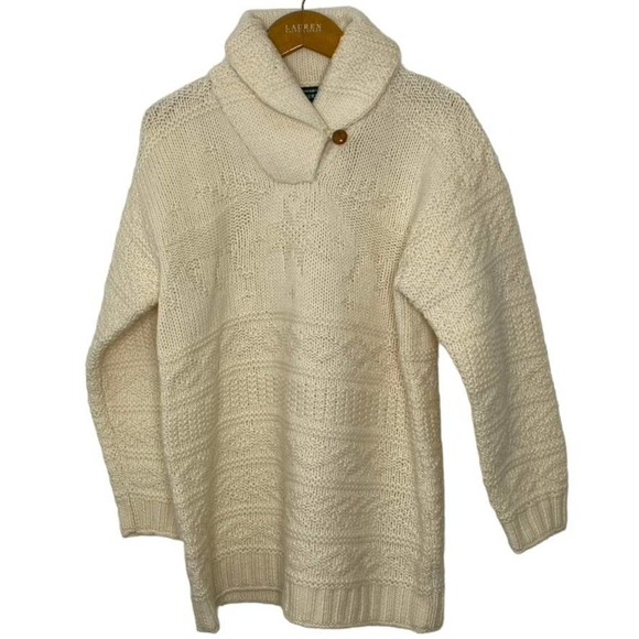 Lauren Ralph Lauren hand knit shawl collar wool sweater