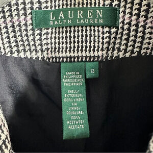 Lauren Ralph Lauren houndstooth blazer, black/white, size 12, 100% linen shell