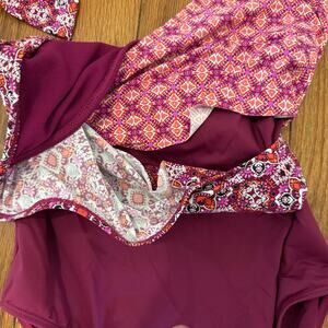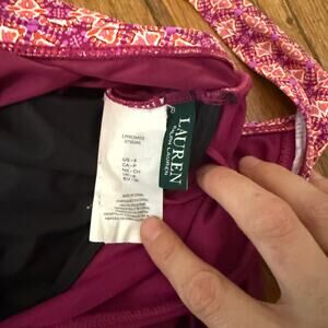 Lauren Ralph Lauren maroon geometric print wrap top bathing suit size 4