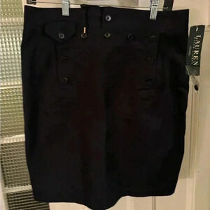 Lauren Ralph Lauren navy sailor button front skirt with lace up back. Size 8 NWT