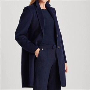 New without tag Lauren Ralph Lauren navy wool blend longline dress coat. Solid dark navy blue color. Notch lapel. Two button closure. Long sleeve. Unlined. Retails $360