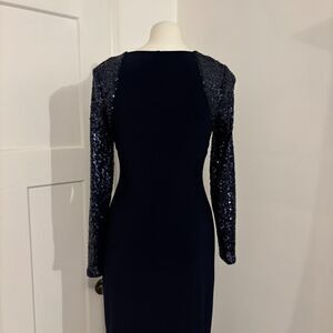 Lauren Ralph Lauren size 2 Formal Sequin Sleeve Detail Navy Blue Long Gown Dress